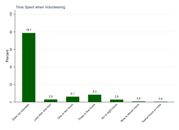 [2] Though we are dealing with a very small number of people; only 12 respondents (0.9% of the sample) indicated that they volunteered daily.